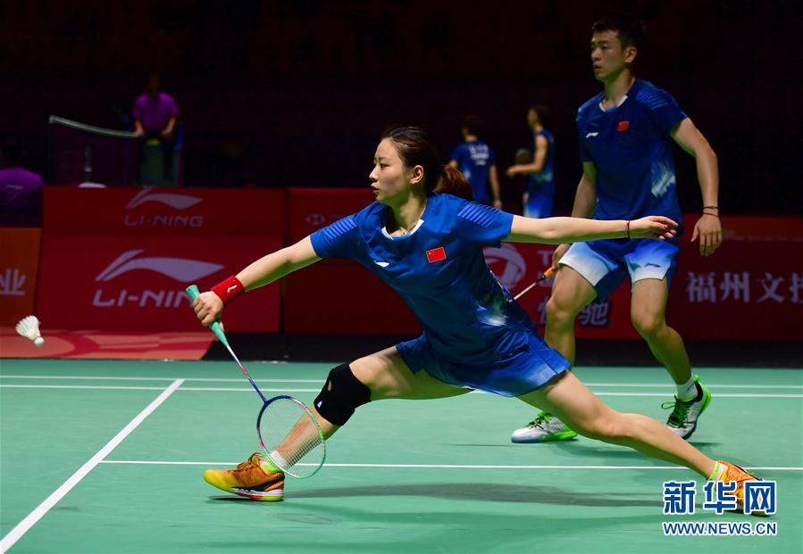 11月6日,中国组合郑思维/黄雅琼(左)在比赛中。当日,在2018中国(福州)羽毛球公开赛混双首轮比赛中,中国组合郑思维/黄雅琼以2比1战胜丹麦组合尼克拉斯·诺尔/萨拉·蒂格森,晋级下一轮。 新华社记者魏培全摄