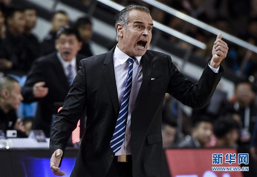 四川五粮金樽队主教练德克·鲍曼在场边指挥。新华社记者许畅摄