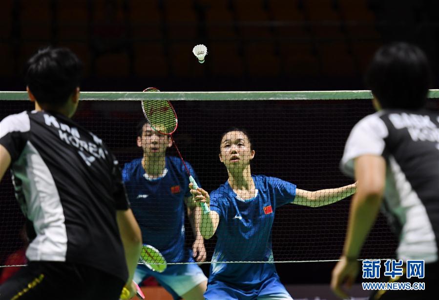 中国组合鲁恺(左二)/陈露(右二)在比赛中。 新华社记者林善传摄