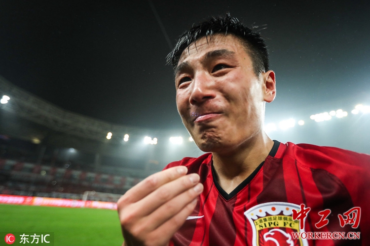 2018年11月7日,上海,2018中超联赛第29轮,上海上港2-1北京人和。武磊赛后喜极而泣。
