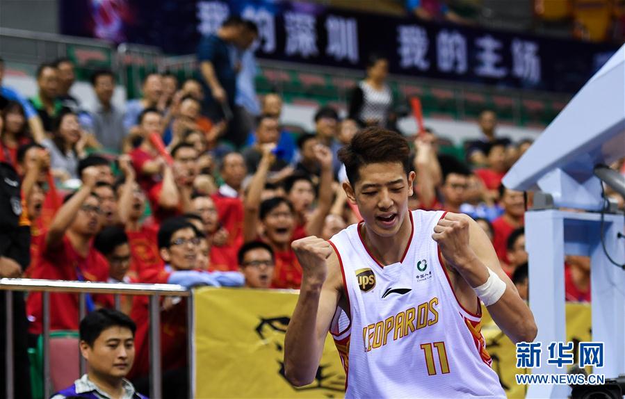 深圳马可波罗队球员沈梓捷(前)在比赛中庆祝得分。新华社记者毛思倩摄