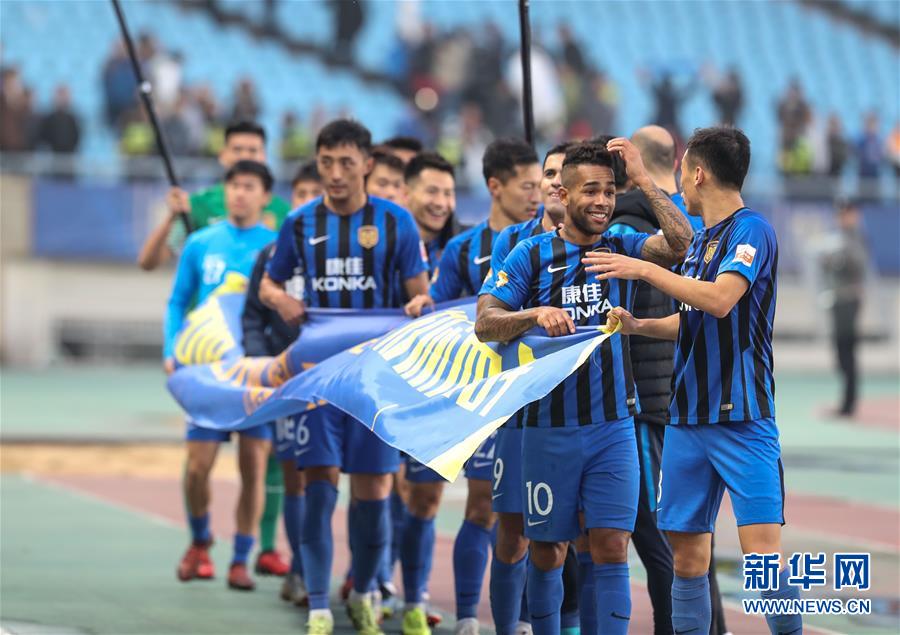 江苏苏宁队球员在比赛后感谢球迷。新华社记者杨磊摄