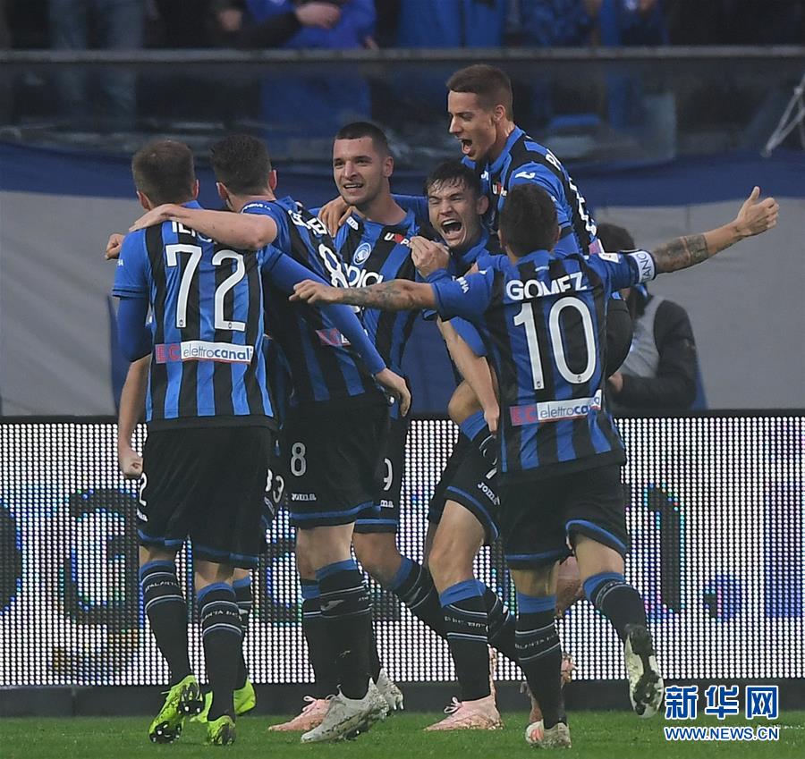 11月11日,亚特兰大队球员在比赛中庆祝进球。 当日,在2018-2019赛季意大利足球甲级联赛第12轮比赛中,亚特兰大队主场以4比1战胜国际米兰队。 新华社发