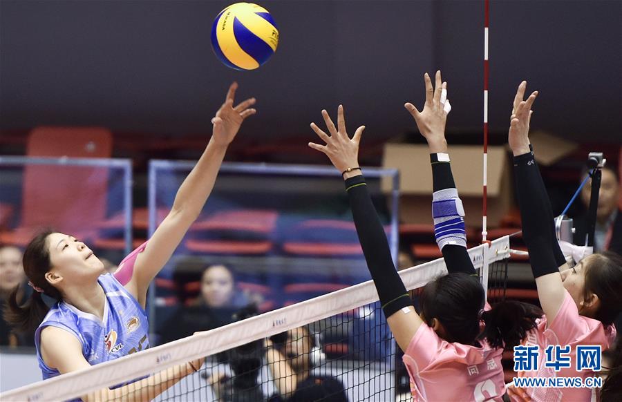 天津渤海队球员李盈莹(左)在比赛中进攻。新华社记者姚剑锋摄