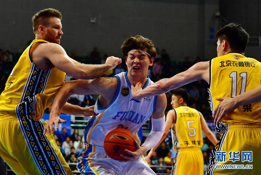 11月13日,福建晋江文旅队球员王哲林(中)在比赛中突破。 当日,在2018-2019赛季中国男子篮球职业联赛(CBA)第11轮比赛中,福建晋江文旅队主场以140比131胜北京农商银行队。 新华社记者魏培全摄