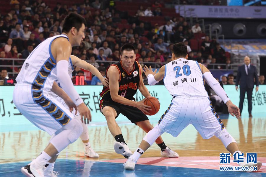 南京同曦大圣队球员宋建骅(右二)在比赛中突破北京首钢队球员翟晓川(右一)的防守。 新华社记者徐子鉴摄