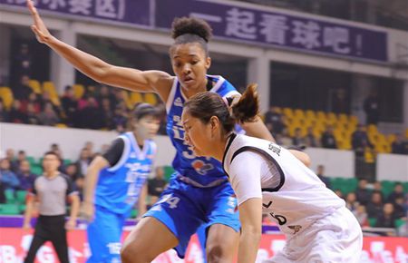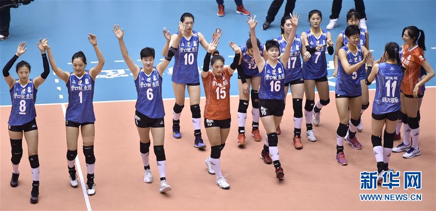 11月13日,辽宁营口鲅鱼圈女排队球员在比赛胜利后向观众致意。 当日,在2018-2019赛季中国女排超级联赛第一阶段分组赛A组第六轮比赛中,辽宁营口鲅鱼圈队以3比1战胜广东恒大女排队。 新华社记者姚剑锋摄