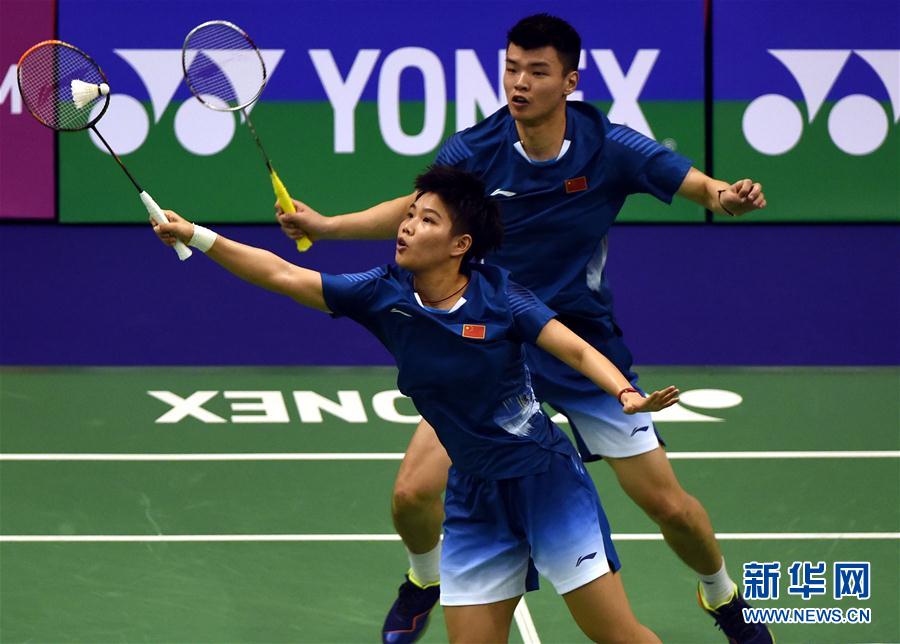 11月13日,中国选手王懿律/黄东萍(前)在比赛中。 当日,在2018国际羽联世界巡回赛香港锦标赛混双第一轮比赛中,中国选手王懿律/黄东萍以2比1战胜中国香港选手李晋熙/周凯华,晋级下一轮。 新华社记者卢炳辉摄