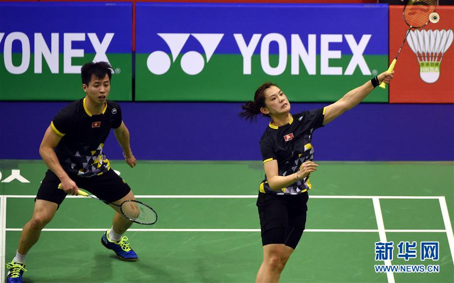 11月13日,中国香港选手李晋熙/周凯华(右)在比赛中。 新华社记者卢炳辉摄