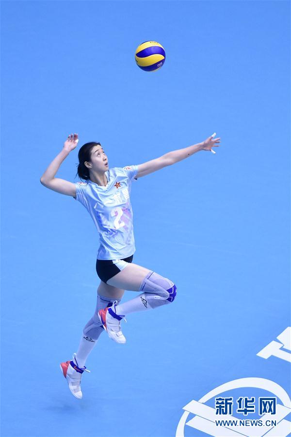 八一南昌队球员周妤婕在比赛中发球。 新华社记者姚剑锋摄