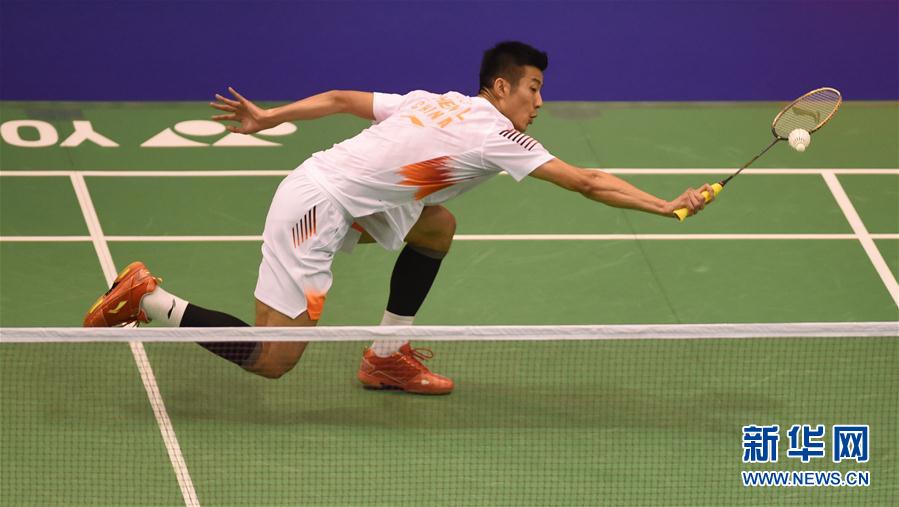 谌龙在比赛中回球。 新华社记者卢炳辉摄