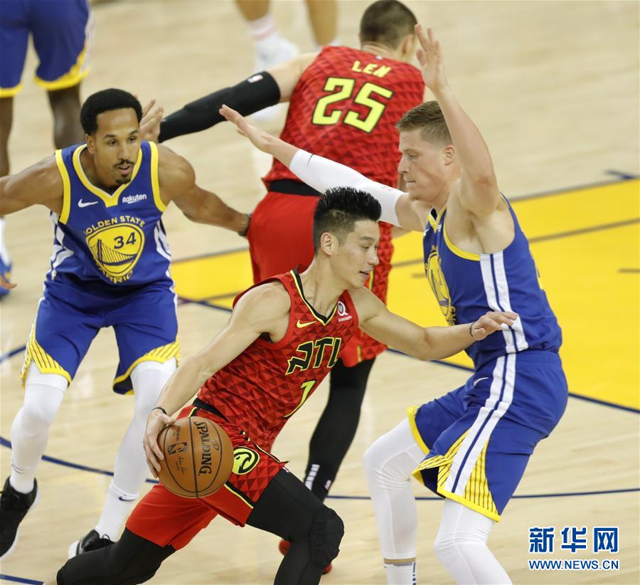 老鹰队球员林书豪(中)在比赛中进攻。 新华社发