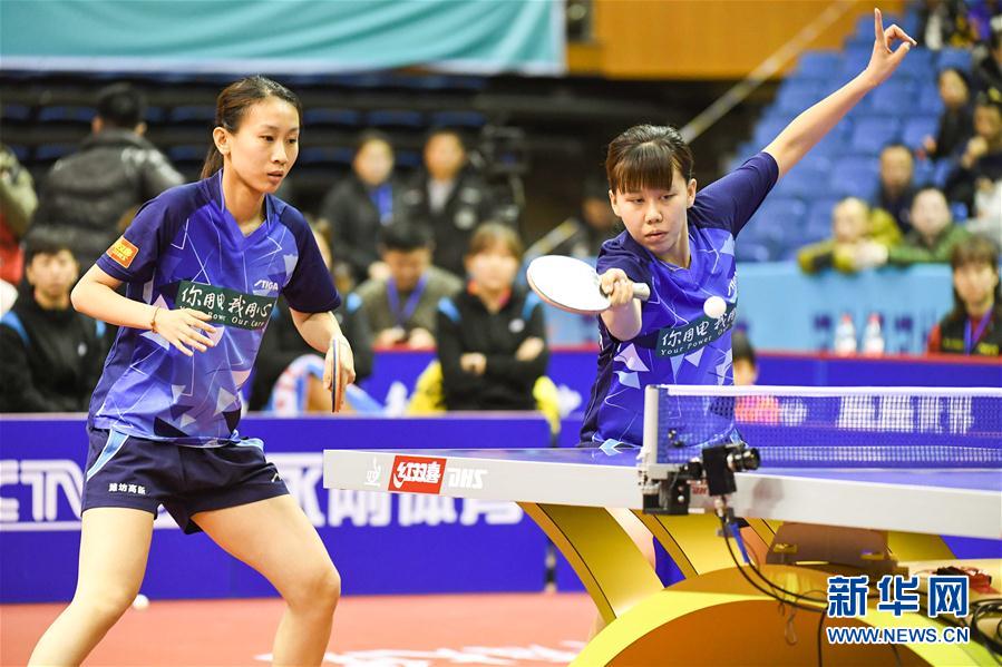 11月14日,山东鲁能·潍坊高新队选手陈幸同(右)/刘高阳在比赛中。最终她们以2比0战胜黑龙江中州电缆永刚队选手冯天薇/刘铭。 当日,在2018-2019赛季中国乒乓球俱乐部超级联赛女子团体第一阶段第四轮比赛中,山东鲁能·潍坊高新队客场以3比0战胜黑龙江中州电缆永刚队。 新华社记者王松摄