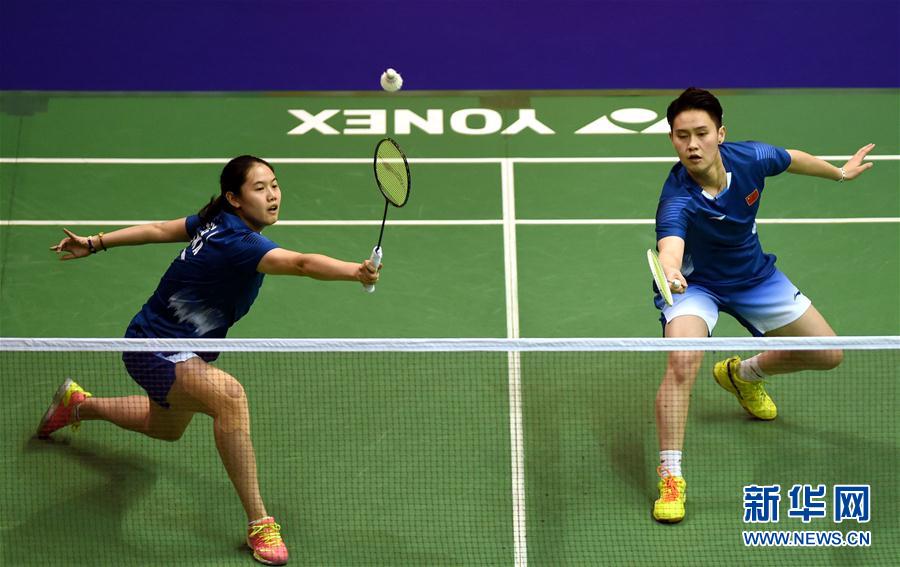 11月15日,中国选手李汶妹/郑雨(左)在比赛中。 当日,在2018年香港羽毛球公开赛女双第二轮比赛中,中国选手李汶妹/郑雨以0比2不敌韩国选手李绍希/申昇瓒,无缘晋级下一轮。 新华社记者卢炳辉摄