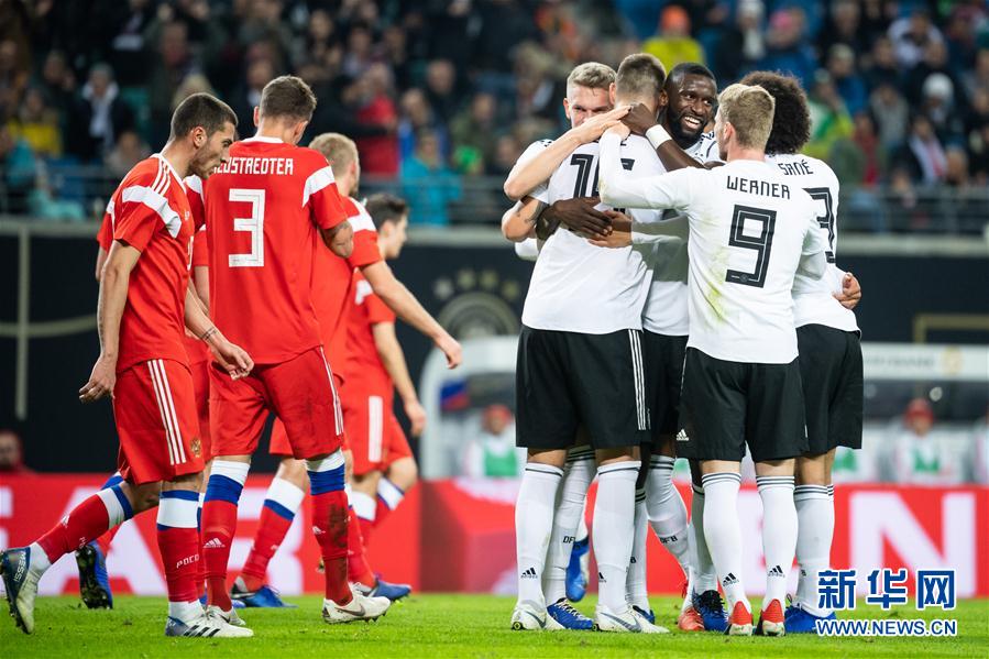 11月15日,德国队球员(右)在比赛中庆祝进球。 新华社发(凯文·福格特摄)