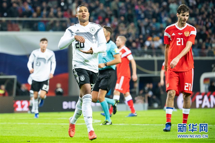 11月15日,德国队球员格纳布里(左二)在比赛中庆祝进球。 新华社发(凯文·福格特摄)