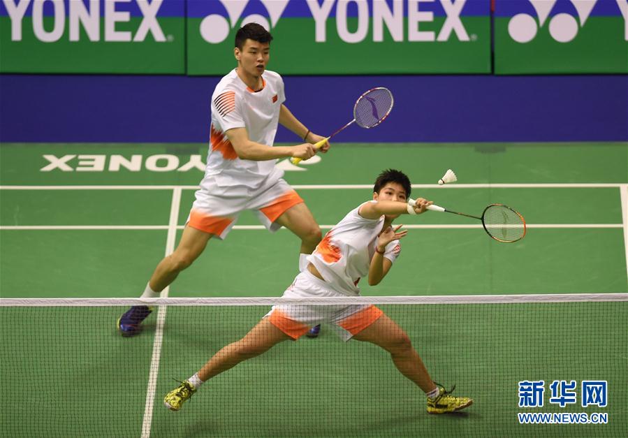 11月16日,中国组合王懿律/黄东萍(前)在比赛中。 当日,在2018年香港羽毛球公开赛混双四分之一决赛中,中国组合王懿律/黄东萍以2比1战胜印尼组合乔丹/奥克塔维安蒂,晋级半决赛。 新华社记者卢炳辉摄