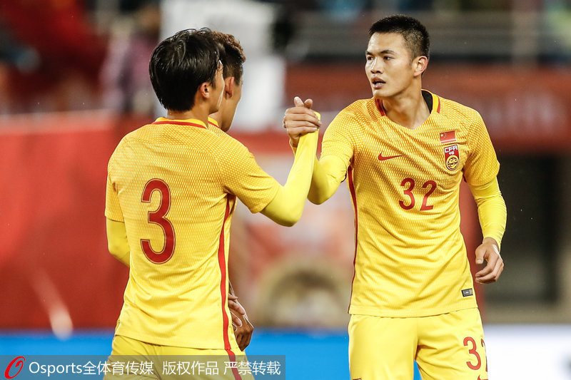 尹聪耀与队友庆祝进球