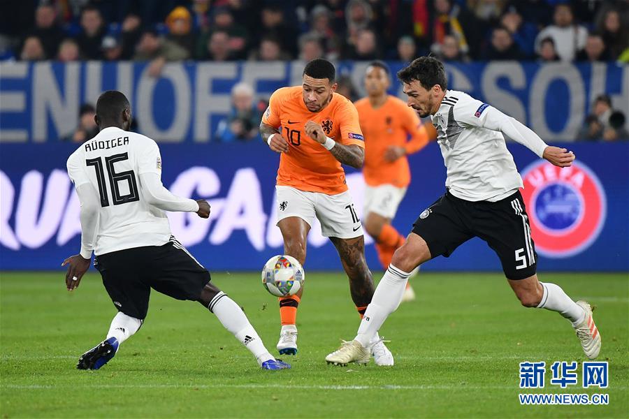 11月19日,荷兰队球员德佩(中)在比赛中突破。新华社发(乌尔里希·胡夫纳格尔摄)