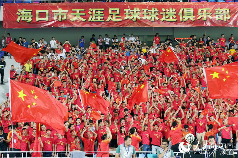 人民网海口11月20日电(记者吉羽)11月20日晚,中国国家男足在海口五源河体育场进行的热身赛中1-1战平巴勒斯坦队。作为海口市五源河体育场迎来的第一场国足赛事,当天上座超过31000人,球迷通过自己的热情助威比赛,并打出了向主教练里皮表示感谢的大型横幅。