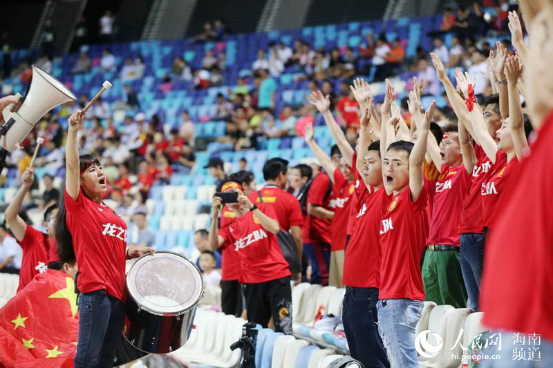 人民网海口11月20日电(记者吉羽)11月20日晚,中国国家男足在海口五源河体育场进行的热身赛中1-1战平巴勒斯坦队。作为海口市五源河体育场迎来的第一场国足赛事,当天上座超过31000人,球迷通过自己的热情助威比赛,并打出了向主教练里皮表示感谢的大型横幅。