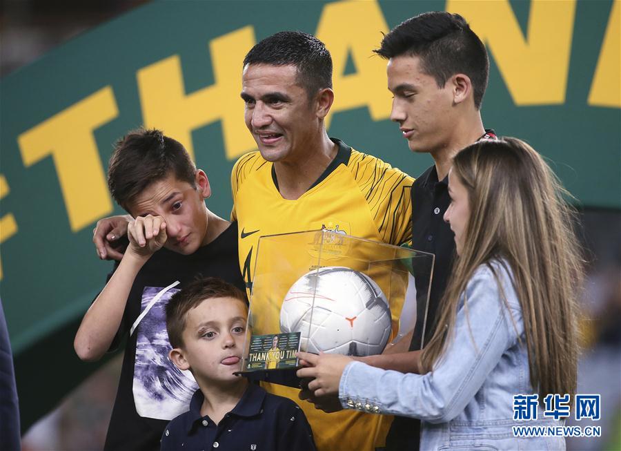 卡希尔(中)在赛后与家人庆祝比赛胜利。新华社/美联