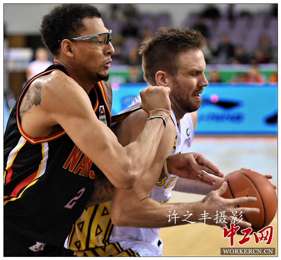 2018年11月22日晚,CBA第15轮比赛。北京北控农商行队主场以110比117负于南京同曦队,同曦队收获3连胜,同时北控队五连败。图为双方的比赛瞬间。
