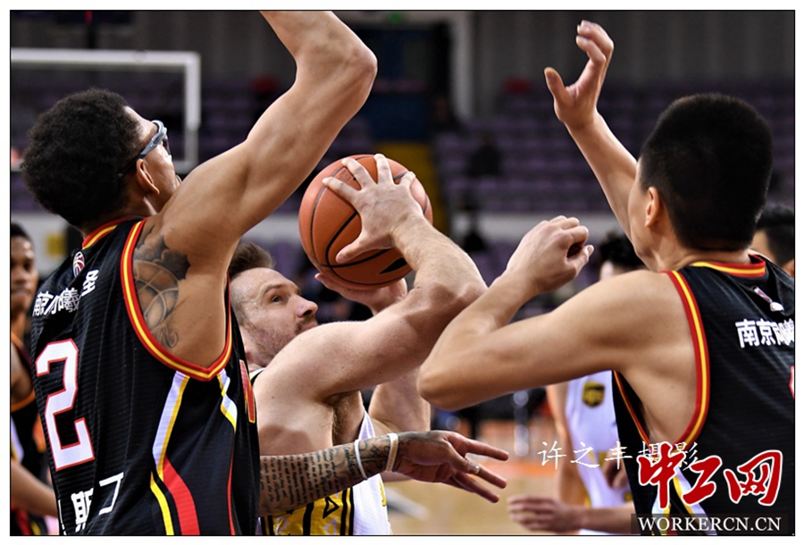 2018年11月22日晚,CBA第15轮比赛。北京北控农商行队主场以110比117负于南京同曦队,同曦队收获3连胜,同时北控队五连败。图为双方的比赛瞬间。