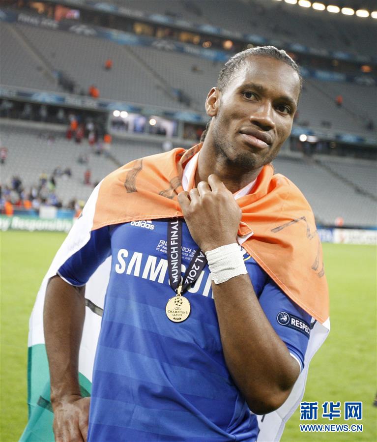 这是2012年5月19日,切尔西队球员德罗巴在2011-2012赛季欧洲足球冠军联赛决赛夺冠后庆祝胜利。 新华社记者王丽莉摄