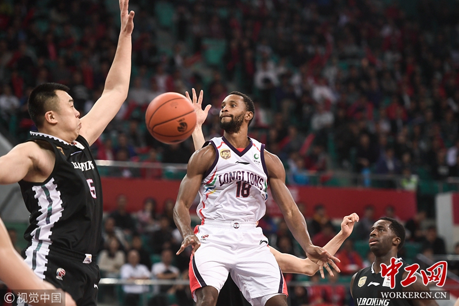 2018年11月23日,广东广州,18/19CBA第15轮,广州龙狮Vs辽宁衡业。凯尔·弗格传球 图片来源:视觉中国