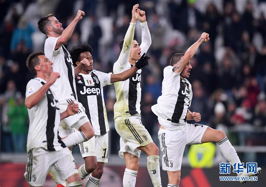 尤文图斯队球员庆祝胜利。新华社发