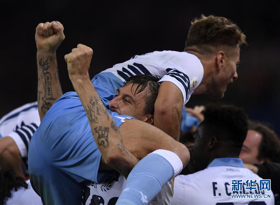 11月25日,拉齐奥队球员在比赛中庆祝科雷亚的进球。 当日,在2018-2019赛季意大利足球甲级联赛第13轮比赛中,拉齐奥队主场以1比1战平AC米兰队。 新华社发