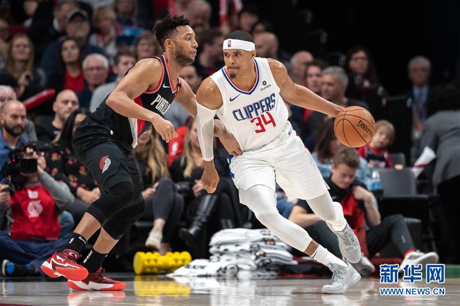 11月25日,洛杉矶快船队球员托比亚斯·哈里斯(右)在比赛中进攻。 当日,在2018-2019赛季NBA联赛常规赛中,洛杉矶快船队客场以104比100战胜波特兰开拓者队。 新华社/路透