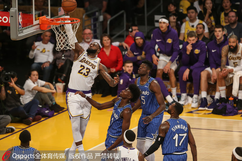 人民网北京11月27日电(杨乔栋)北京时间11月26日上午,NBA常规赛继续进行。洛杉矶湖人主场迎战奥兰多魔术队。詹姆斯此役贡献24分4篮板7助攻,但最后时刻三分哑火难以扭改败局,以104-108惜败对手,三连胜就此终结。而魔术队依靠着武切维奇31分15个篮板7次助攻的全面表现,实现赛季对湖人的“双杀”。