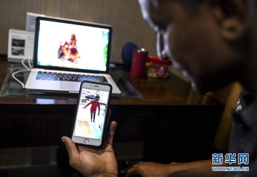 图为在维森特日常居住的位于乌鲁木齐的一家酒店内,维森特在浏览手机和电脑上家人的照片(11月4日摄)。 新华社记者王菲摄