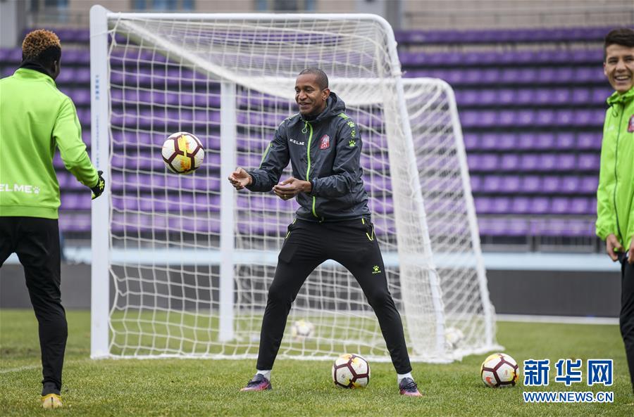图为在位于乌鲁木齐的红山体育场内,维森特(中)在指导球员训练(11月1日摄)。 新华社记者王菲摄