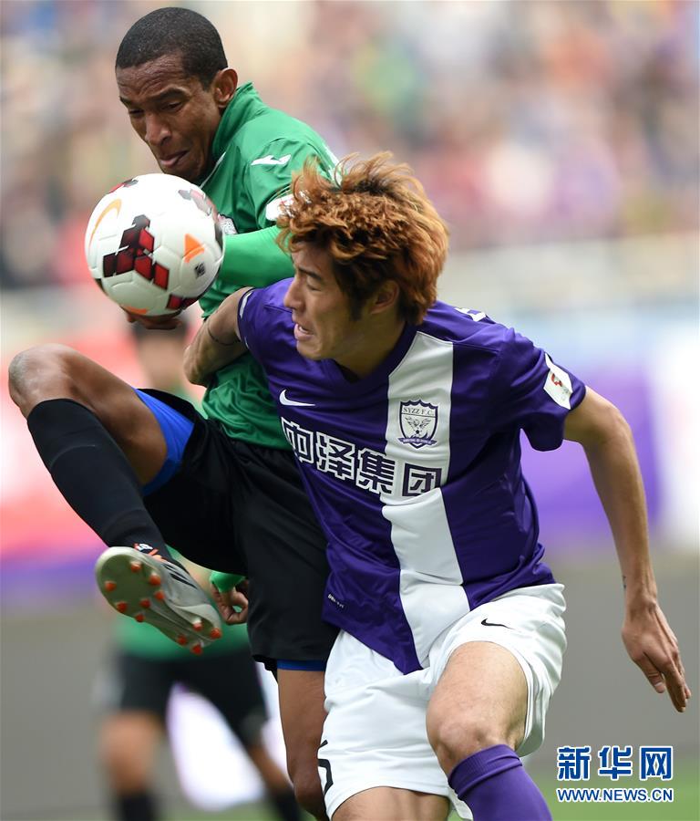 图为2014年4月12日,新疆达坂城纳欢队球员维森特(上)与沈阳中泽队球员杨子拼抢。当日,在2014赛季中甲联赛第五轮比赛中,沈阳中泽队主场以0比0战平新疆达坂城纳欢队。 新华社记者李钢摄