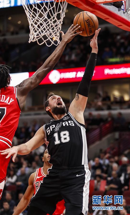 11月26日,马刺队球员贝里内利在比赛中上篮。 当日,在2018-2019赛季NBA常规赛中,圣安东尼奥马刺队客场以108比107战胜芝加哥公牛队。 新华社发