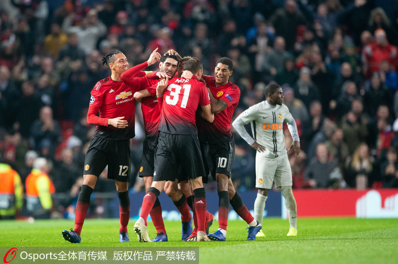 人民网北京11月28日电(杨磊) 北京时间11月28日凌晨,2018/19赛季欧冠小组赛继续进行,曼联主场1比0险胜年青人,拉什福德错过单刀,德赫亚门线救险,费莱尼补时绝杀帮助曼联提前1轮出线。