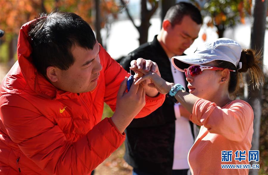 图为运动员吕秀芝(右)在完成专项公路训练后进行血液乳酸测试(11月28日摄)。 新华社记者夏一方摄