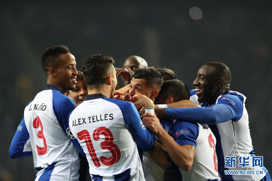 波尔图队球员在比赛中庆祝进球。 新华社发
