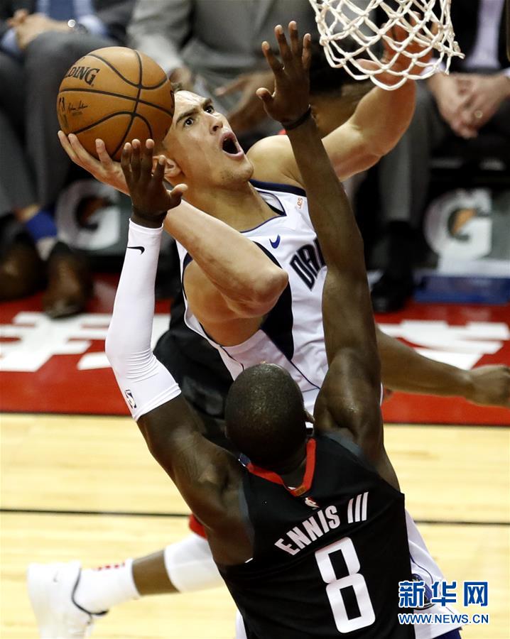 独行侠队球员鲍威尔(上)在比赛中上篮。新华社发