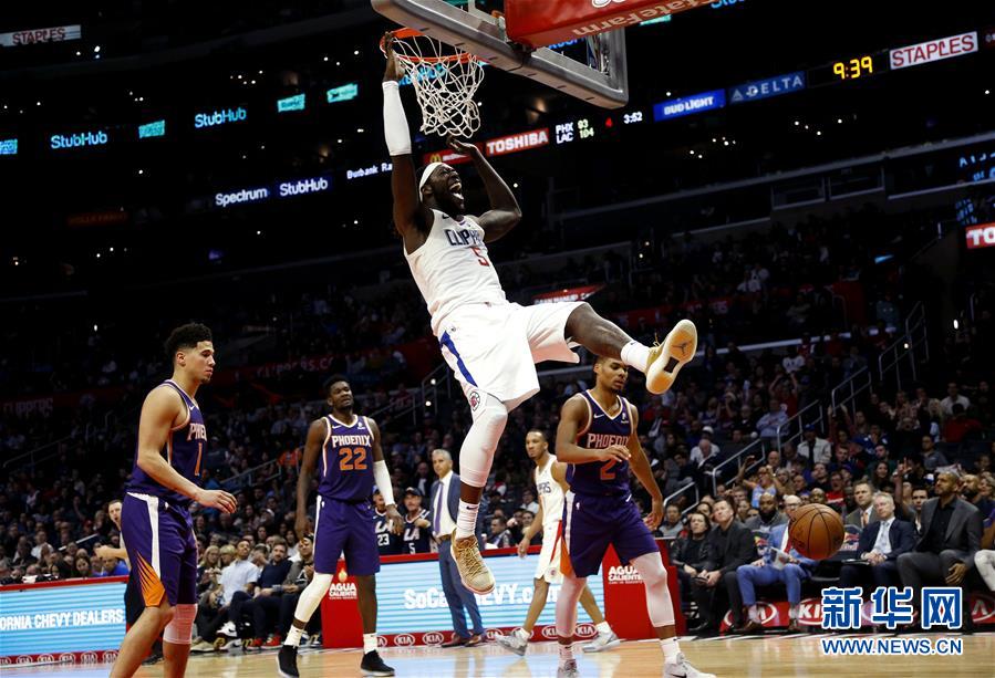11月28日,快船队球员蒙特雷兹·哈勒尔(上)在比赛中扣篮得分。 当日,在2018-2019赛季NBA联赛常规赛中,洛杉矶快船队主场以115比99战胜菲尼克斯太阳队。 新华社发