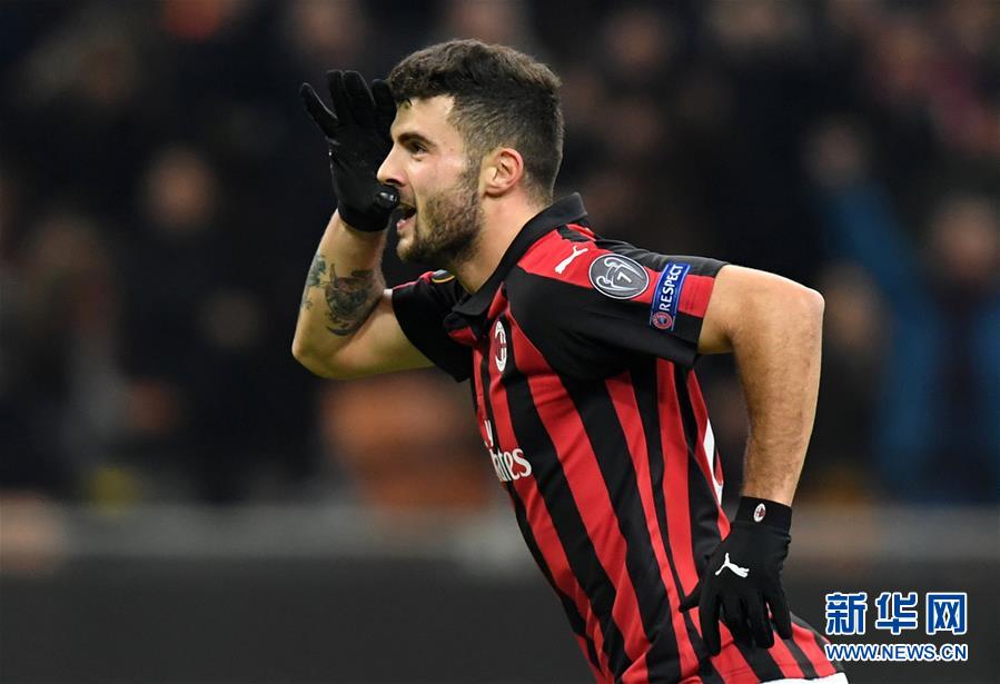 11月29日,AC米兰队球员库特罗内在比赛中庆祝进球。 当日,在2018-2019赛季欧联杯F组比赛中,意甲AC米兰队主场以5比2战胜卢森堡迪德朗日队。 新华社/路透