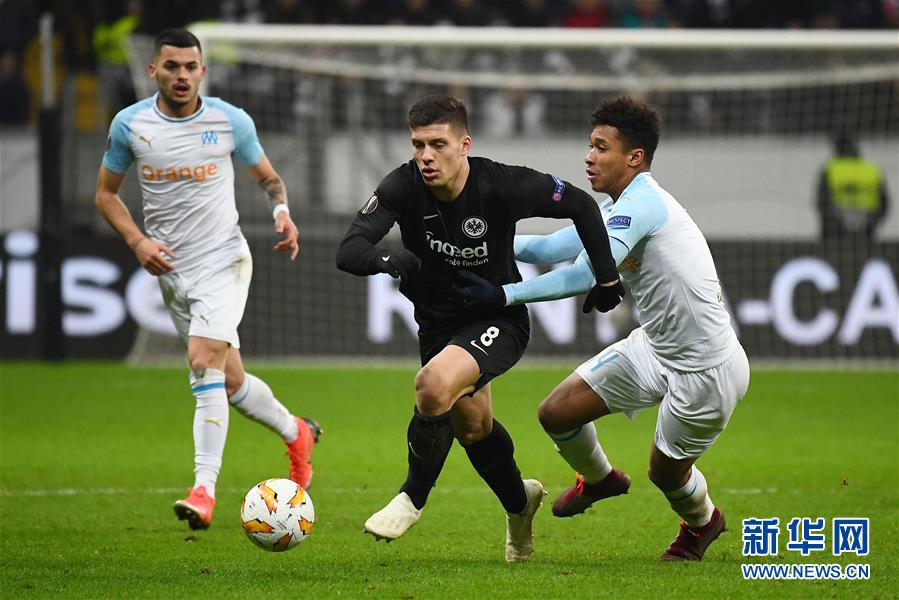 法兰克福队球员约维奇(中)在比赛中进攻。新华社发