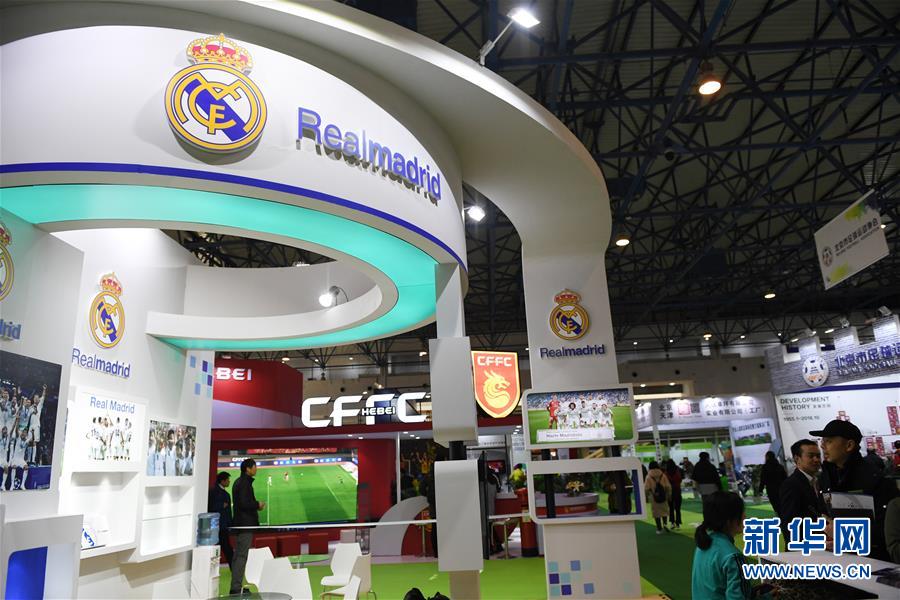 参观者在西班牙皇家马德里俱乐部展示区参观。 新华社记者鞠焕宗摄