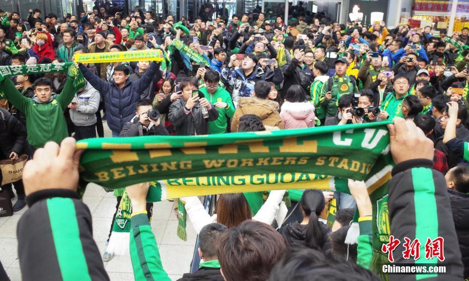12月1日,北京国安俱乐部众将搭乘火车抵达北京南站,数千球迷到场迎接。11月30日,备受关注的足协杯“京鲁大战”落幕。北京中赫国安凭借总比分3:3,客场进球多一球的优势,战胜山东鲁能泰山,夺得2018中国足协杯冠军。 中新网记者 李霈韵 摄