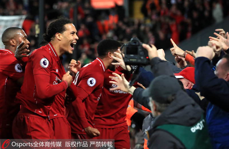 下半场补时第5分钟,利物浦队阿诺德后场长传吊向禁区,米纳的头球解围皮球没有飞远,范戴克得球远射击中了球门横梁,替补登场的奥里吉机警补射得手,完成绝杀!最终,利物浦主场1-0险胜埃弗顿。