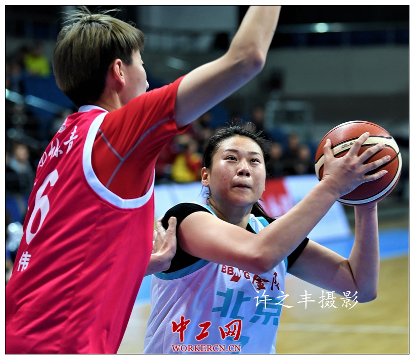 2018年12月3日晚,北京首钢篮球中心,北京首钢女篮主场以75比55战胜山西女篮。双方比赛数据:首钢队摩根塔克赢得25分,邵婷12分,高颂10分,冯帆8分。山西队武桐桐14分,郭子瑄12分,吴迪11分,夸妮塔11分。图为双方的比赛。工人日报-中工网记者许之丰摄影报道