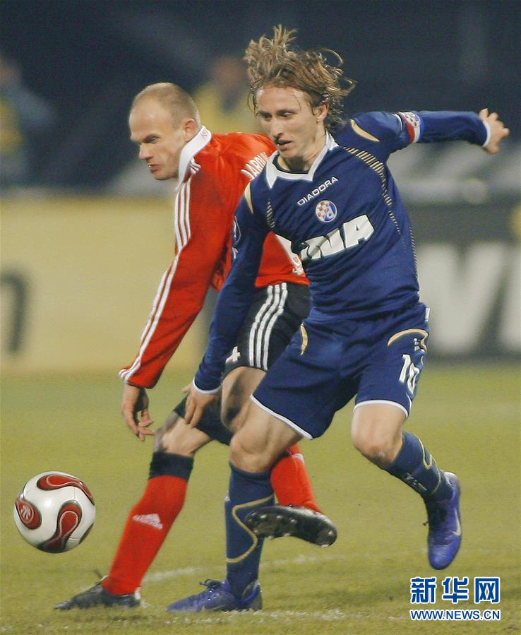 12月3日,在《法国足球》杂志举办的“金球奖”颁奖典礼上,效力于西甲皇家马德里队的克罗地亚球员莫德里奇获得2018年“金球奖”。在2018年,莫德里奇为皇家马德里队夺得五年来第四座欧冠冠军奖杯,实现了欧冠三连冠的壮举;后又率领克罗地亚队历史性地闯入俄罗斯世界杯决赛,最终获得亚军,荣膺世界杯的金球奖;同时打破了梅西和C罗对国际足联世界足球先生长达十年的垄断,当选2018年世界足球先生。 图为当时效力于萨格勒布迪纳摩俱乐部的莫德里奇(右)在欧联杯比赛中(2007年12月5日摄)。 新华社/法新
